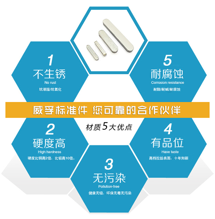 76.DIN6885平鍵,是依靠?jī)蓚€(gè)側(cè)面作為工作面,靠鍵與鍵槽側(cè)面的擠壓來(lái)傳遞轉(zhuǎn)矩的鍵。76.DIN6885平鍵分為普通型76.DIN6885平鍵、薄型76.DIN6885平鍵、導(dǎo)向型76.DIN6885平鍵三種。普通型76.DIN6885平鍵對(duì)中性好,定位精度高,折裝方便,但無(wú)法實(shí)現(xiàn)軸上零件的軸向固定,用于高速或承受沖擊、變載荷的軸;薄型76.DIN6885平鍵用于薄壁結(jié)構(gòu)和傳遞轉(zhuǎn)矩較小的地方;導(dǎo)向型76.DIN6885平鍵用螺釘把鍵固定在軸上,用于軸上的零件沿軸移動(dòng)量不大的場(chǎng)合;導(dǎo)向鍵還包括滑鍵,它固定在輪轂上,軸上零件帶著鍵作軸向移動(dòng),用于軸上零件沿軸移動(dòng)量較大的場(chǎng)合。