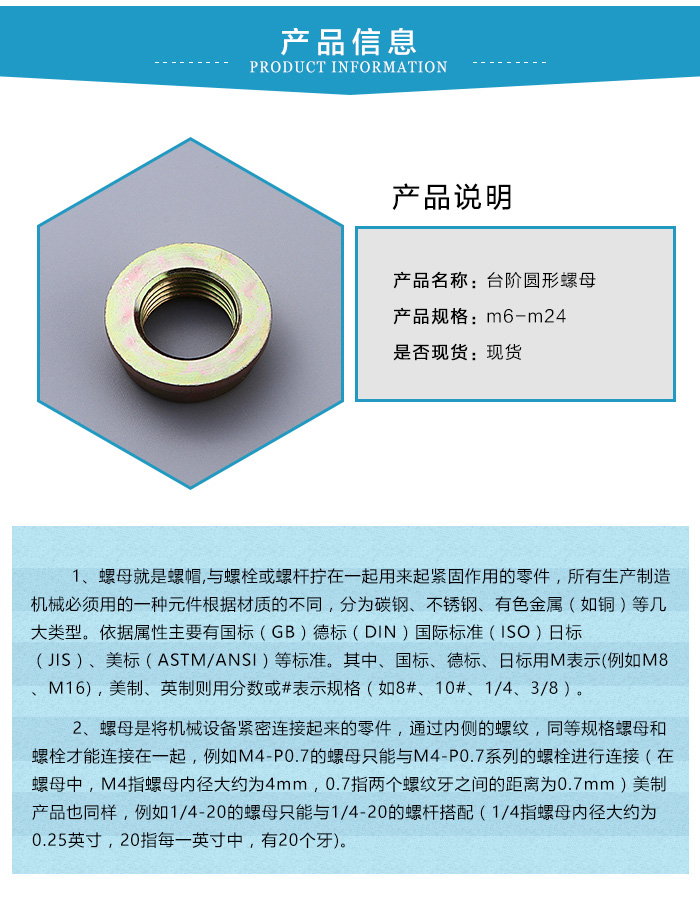 臺階圓形螺母廠家阿國標(biāo)準(zhǔn)件告訴您正確安裝臺階圓形螺母的指南,讓您在安裝時輕松應(yīng)用