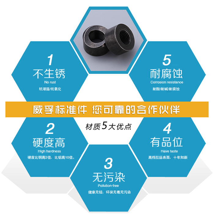 管用凸型圓螺母可以說是在我們的生活中隨處可見,當然在一定程度上說明我們的生活與其息息相關,也體現了管用凸型圓螺母的重要程度,因此對管用凸型圓螺母的要求可是額外重要。管用凸型圓螺母有四大材質:碳鋼、不銹鋼、銅質、合金。碳鋼材質的管用凸型圓螺母可以說是不叫大眾化,也是用量z多的一種,呈黑色狀,整體較為堅硬,不銹鋼材質的管用凸型圓螺母,則多是運用在一些電子行業、船舶工業、汽車行業等,因其不易生銹的原因,運用的領域算是不叫了,銅質管用凸型圓螺母可以說是專用于煤礦、電力等需要防爆的領域,合金鋼材質因非常的堅硬耐用,在鐵路交通、采礦設備、石油鉆井則是廣泛使用的一種。