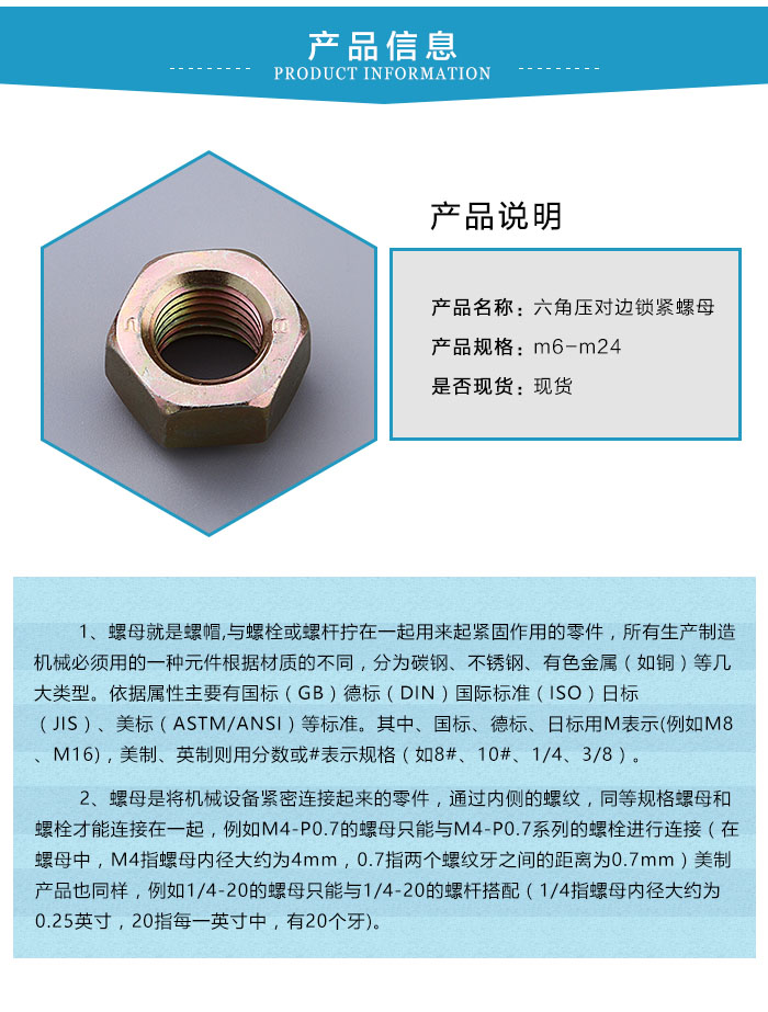 主營產品:防松螺母、鎖緊螺母