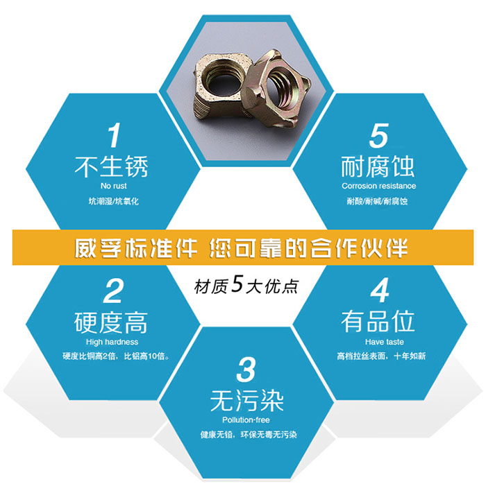 四方焊接螺母是被焊工件的材質(同種或異種),通過加熱或加壓或兩者并用,并且用或不用填充材料,使工件的材質達到原子間的建和而形成性連接的工藝過程, 焊接螺母是具有內螺紋并與螺栓配合使用的緊固件。具有內螺紋并與螺桿配合使用用以傳遞運動或動力的機械零件。