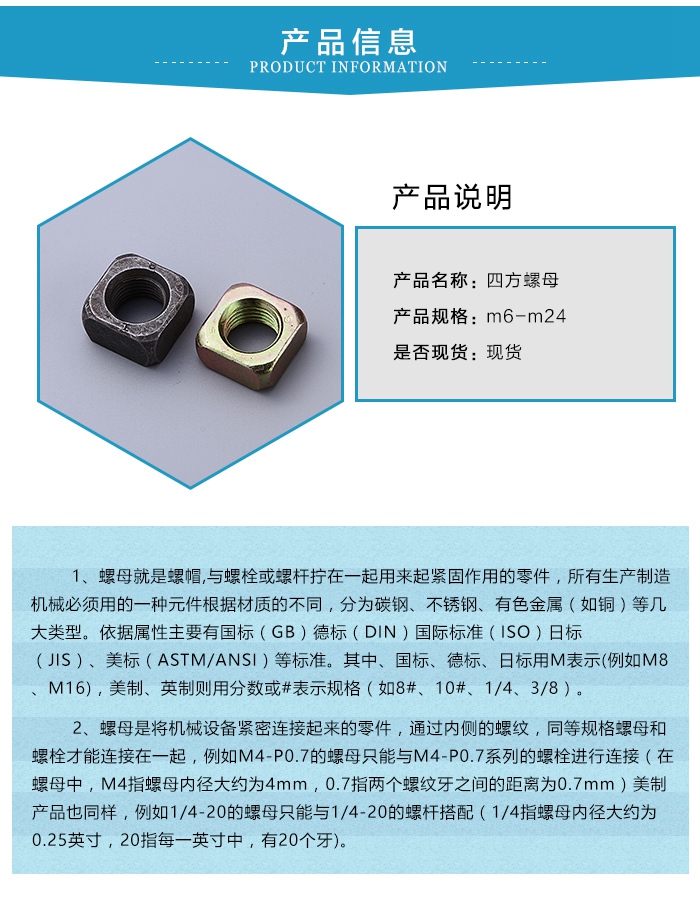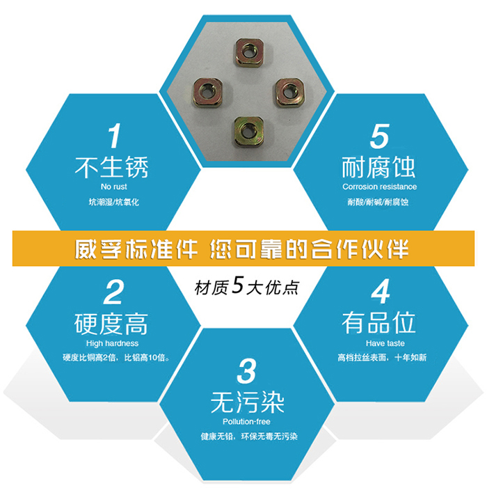 WF002方螺母的表面如果有浮銹或者是油污,孔壁上有毛刺或者是焊瘤的都應該將其清理干凈。第二,摩擦面經過處理之后一定要達到標準的抗劃系數的要求,使用高強度產品則應該有相應的螺栓以及墊圈,在使用的時候必須配套使用,不能互相交換使用。第三,構件的摩擦面處理好之后在安裝的時候不能沾上油污或者是其它的雜物。在安裝的時候摩擦面必須保持干燥,不能在下雨的時候安裝。