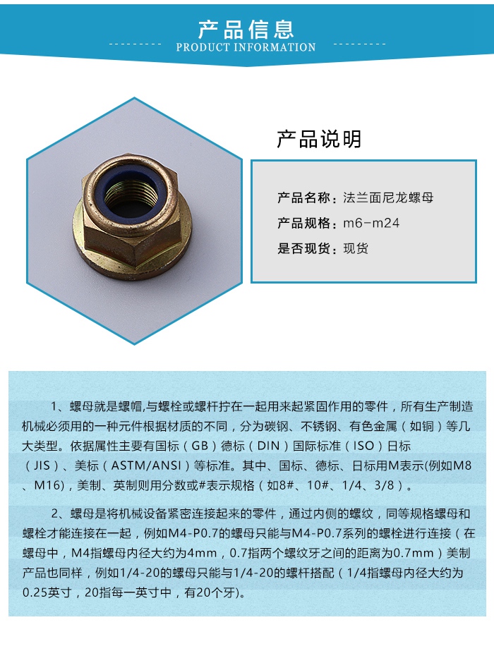 螺紋技術已逐漸進入了包括飛機、汽車、火車、鐵路、船舶、建筑、機械、石油、農機、電力、軍工、醫療器材等眾多領域。這是美國宇航技術成功地運用到民用工業的成功范例,是對傳統的螺紋技術的一場革命-法蘭面尼龍螺母。